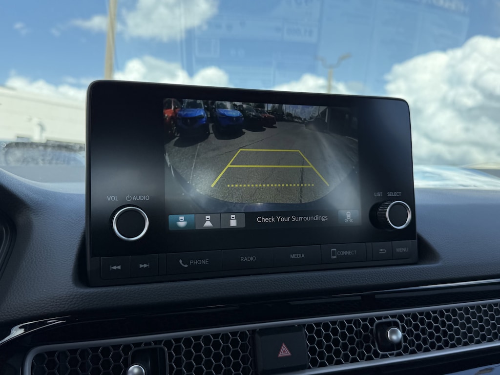 Stepping inside, you'll be greeted by a spacious and well-appointed cabin, featuring high-quality materials and thoughtful design. The Civic Hybrid Sport boasts a wealth of advanced technologies, including an 180-Watt Audio System, Apple CarPlay/Android Auto integration, and a Blind Spot Information System to help keep you aware of your surroundings.
